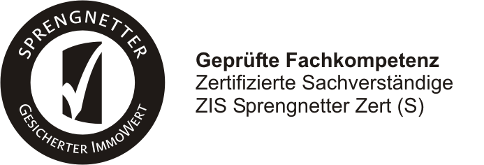 Zertifizierter Sachverständiger für Immobilienbewertung nach DIN EN ISO 17024 (ZIS Sprengnetter Zert (S)), Beleihungswertermittlung (BelWertV) für Kleindarlehen an wohnwirtschaftlich genutzten Objekten
